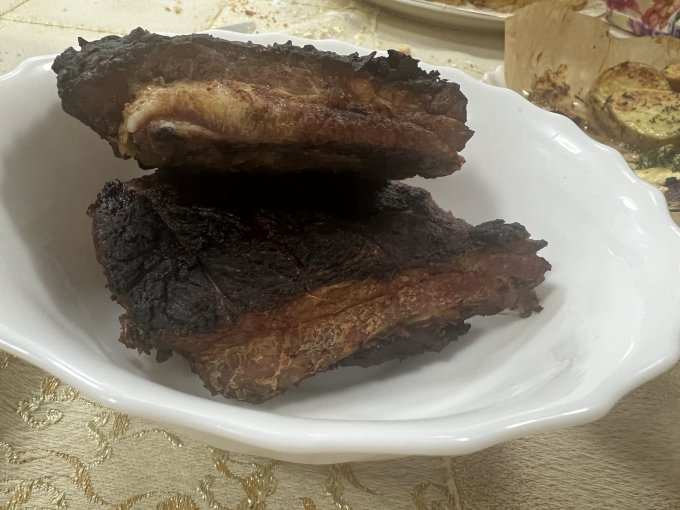| Свинина, рёбра средней части с мясом, жареные на огне на огне |