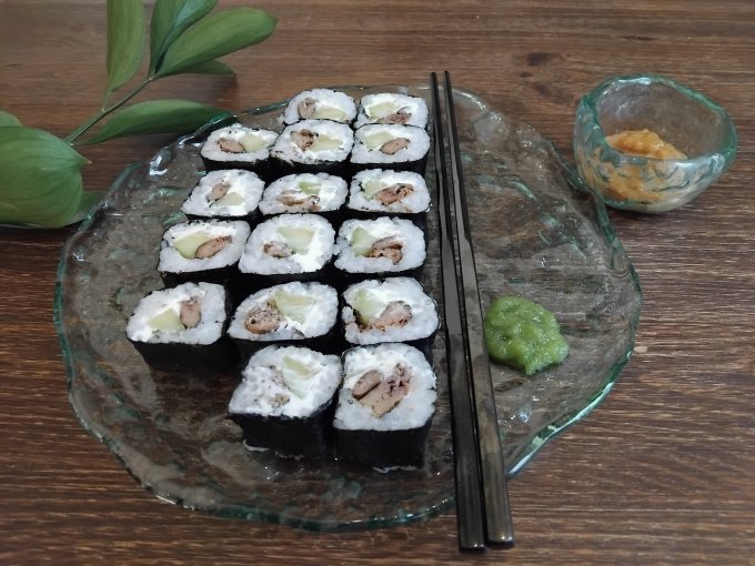 | Роллы из круглого риса со шпротами |