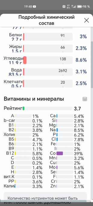 | Кол-во | Калории | Белки | Жиры | Углеводы | |